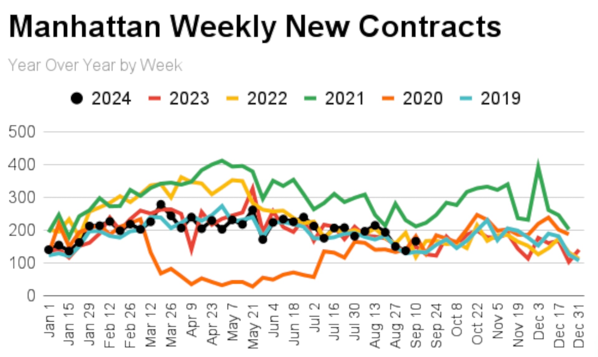 According to Urban Digs analytics, the number of contracts signed at the end of August/early September was 10% higher than it was the year before in the same week. Was the buzz of lower interest rates speeding up our usual seasonal cycles perhaps?