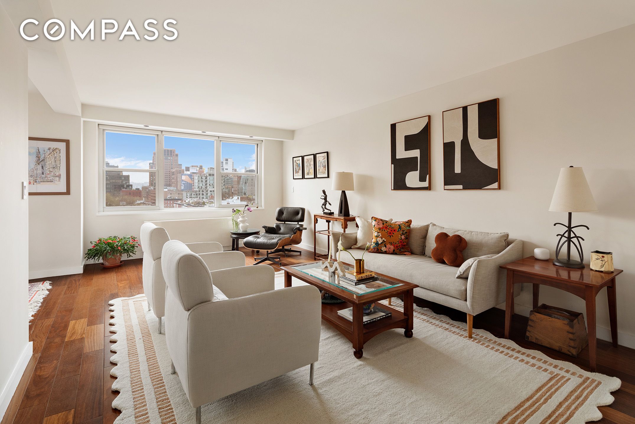 Presenting 10B at London Towne House - a spacious convertible three-bedroom home with South, West, and East exposures, which flood the home with natural light and provide breathtaking views of the City and glimpses of the Hudson River.