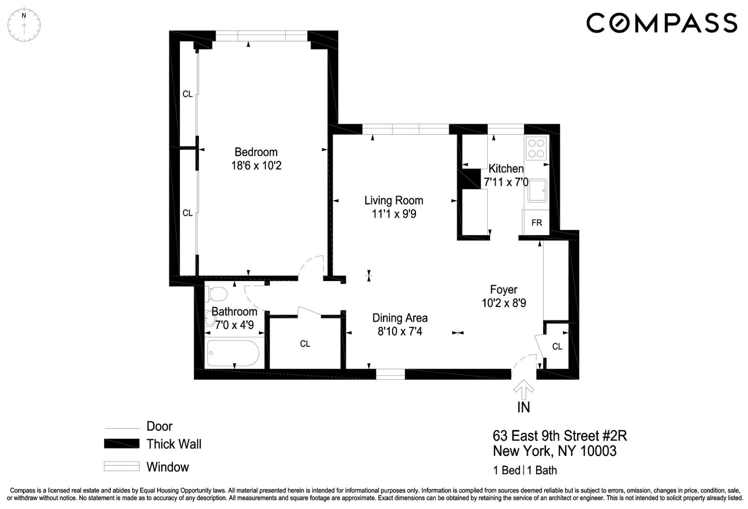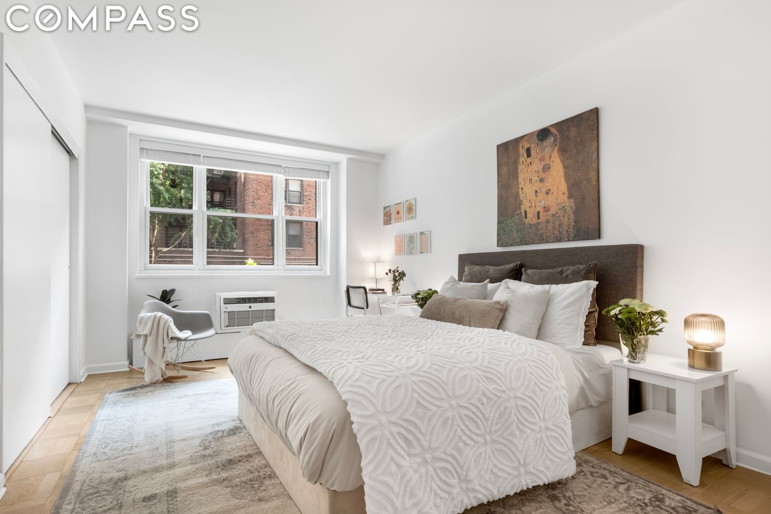 The second floor mezzanine is accessible by a staircase off of the lobby, much like a maisonette within the building, ideal for those who value the ability to come and go quickly, or that want to take their dog for frequent walks in Washington Square Park. The apartment is one of the largest 1 bedroom lines in the building and has very bright southern exposure. Upon entering you are welcomed by a gracious foyer space with an entry hall closet. The kitchen is brand new with great storage space, high-end appliances, and a breakfast bar or work-from-home station with an under-countertop wine fridge. The dining space and living room are very comfortable and private as the windows are recessed away from the street. The bedroom is absolutely enormous, with space for a king-size bed, work from home station, and a Peloton or workout area. There are two huge closets and a walk-in closet next to the renovated bathroom.